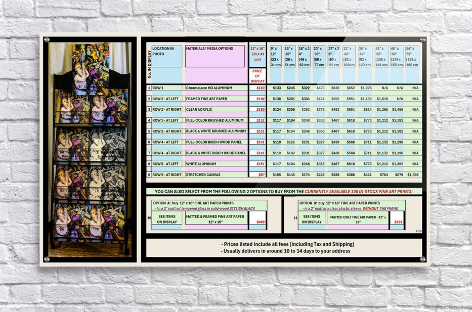 Art Fair 9-2025 Pricing Summary Sheet   PLUS 15 perc HD Sublimation Metal print